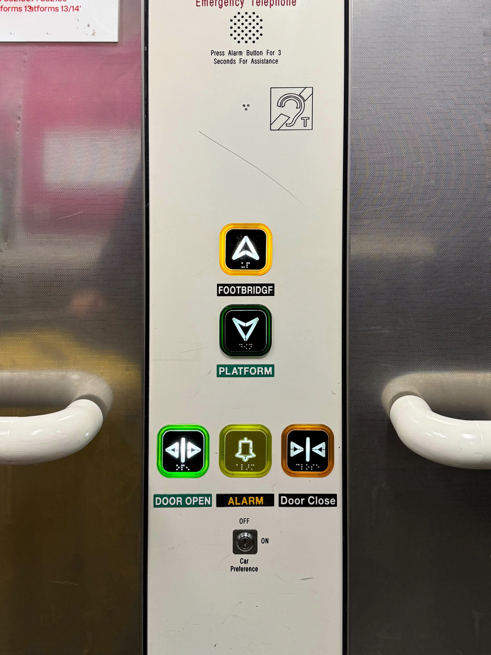 When doors are closing on a person, stroller or luggage trolley, hesitation is dangerous. These controls need unambiguous visuals and strong differentiation. Users should know instantly and instinctively which button performs which function.